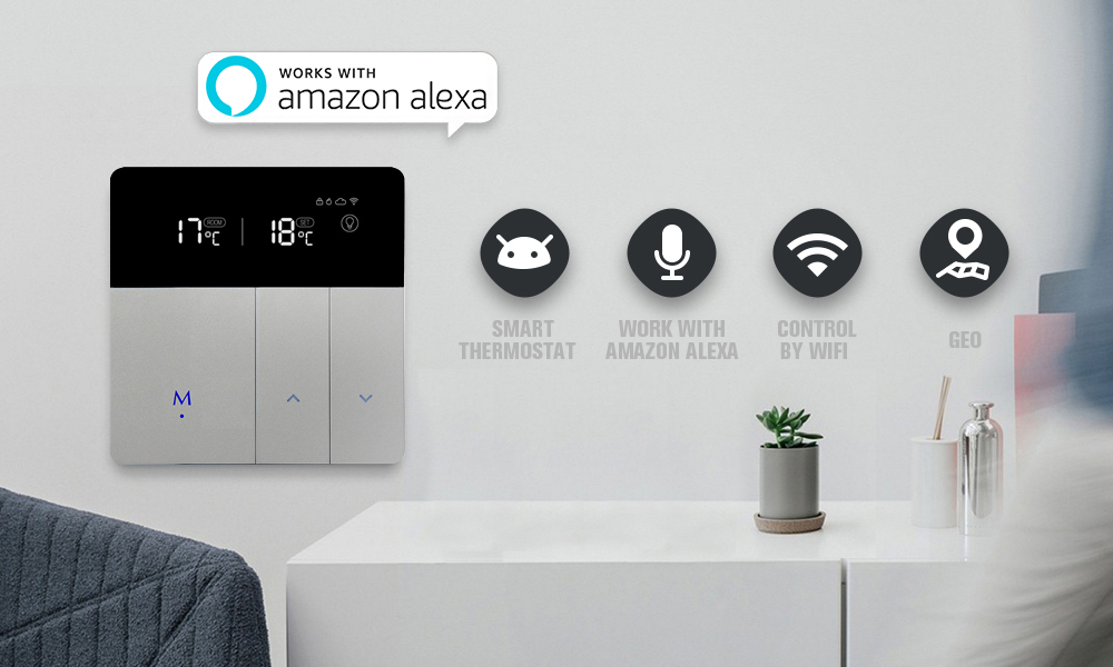 Home > Electric Floor Heating Thermostat Work with Alexa Google Home Smart WIFI Control external Temperature Controller 20A 200-240V