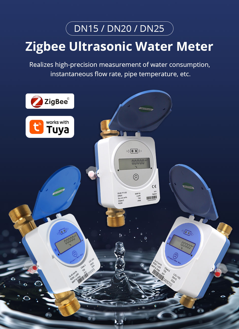 Zemismart Zigbee Smart Ultrasonic Water Meter IP68 LCD Digital Display Water Quantity Flow Consumption Measurement works with Tuya Smart Life App