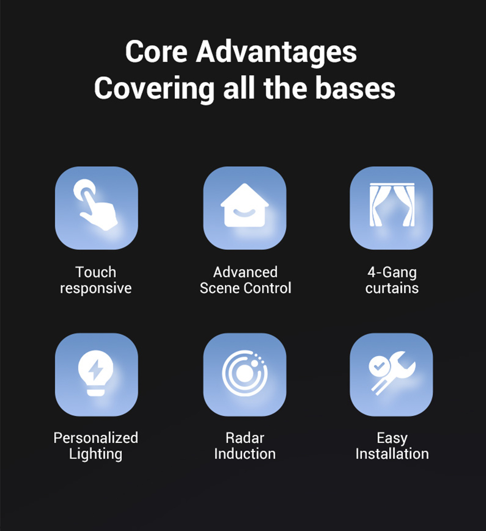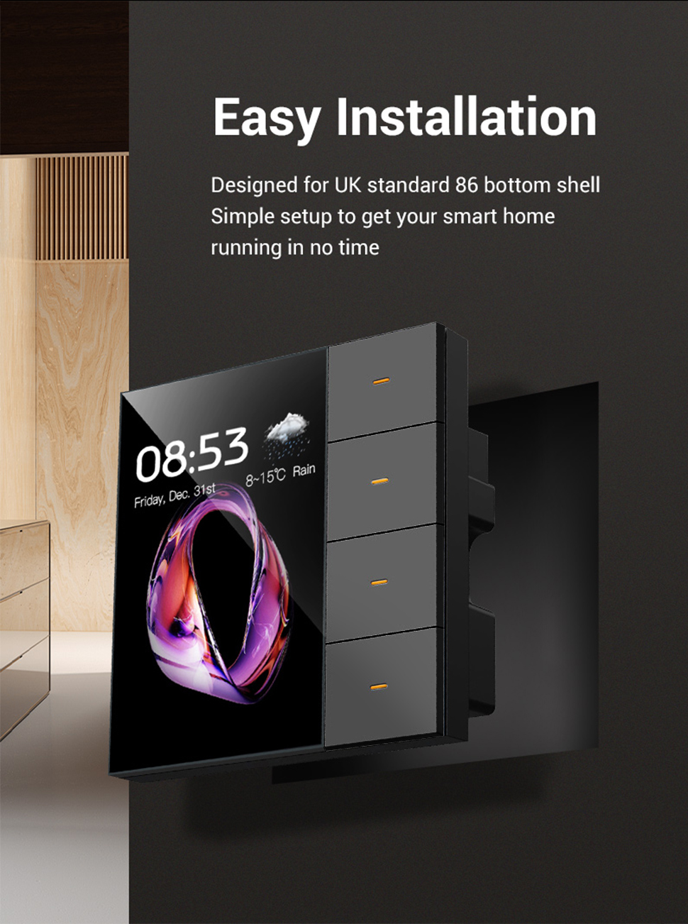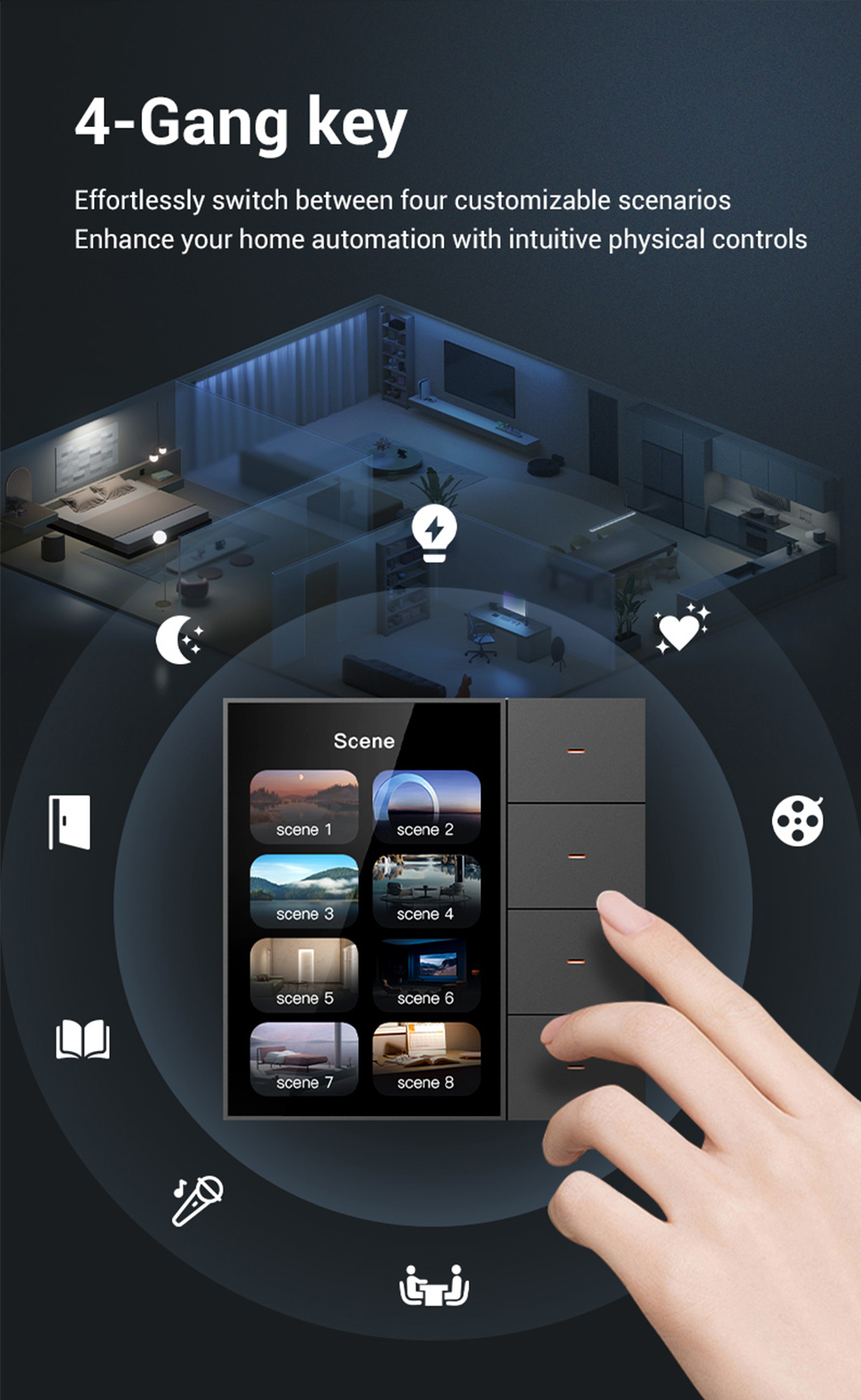 Zemismart 3.5 inch Zigbee Smart Panel Switch 4 Gang Wall Light Switch with Radar Sensor Dimming Switch Curtain Scene Switch