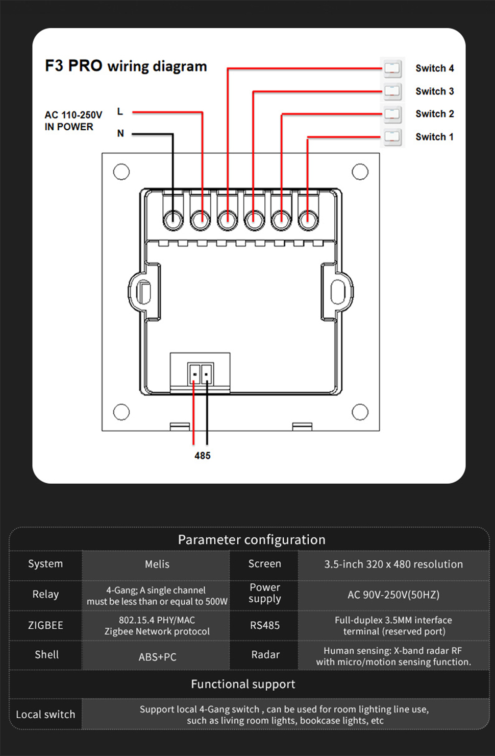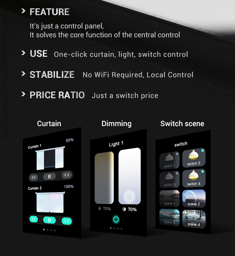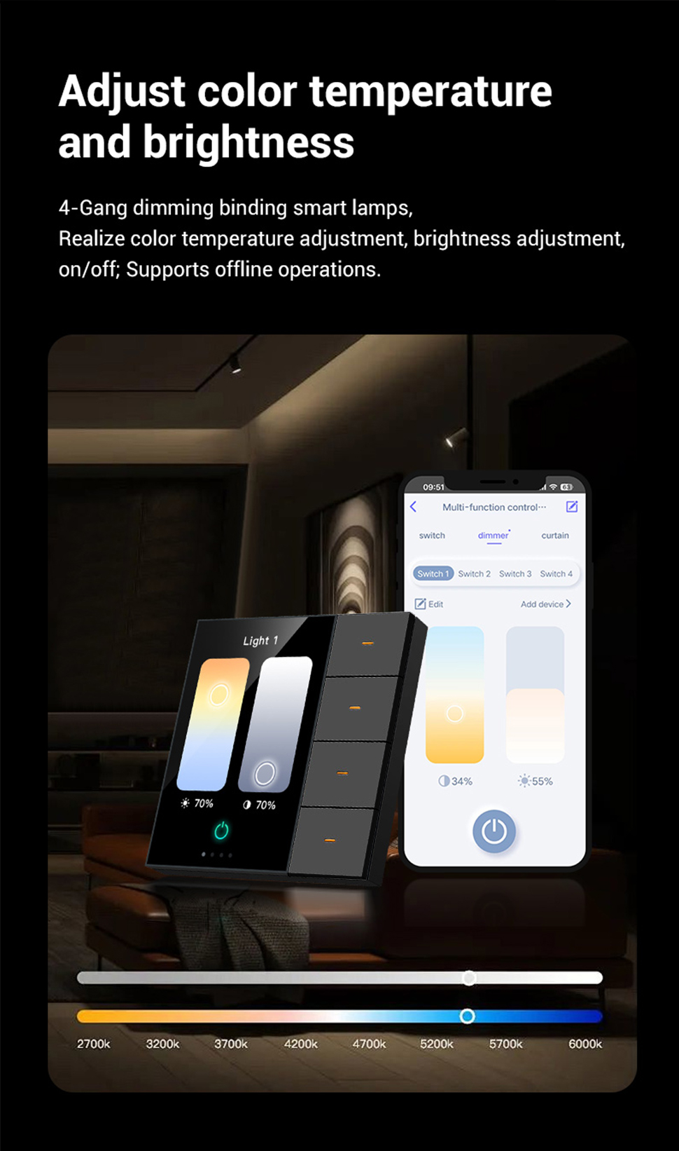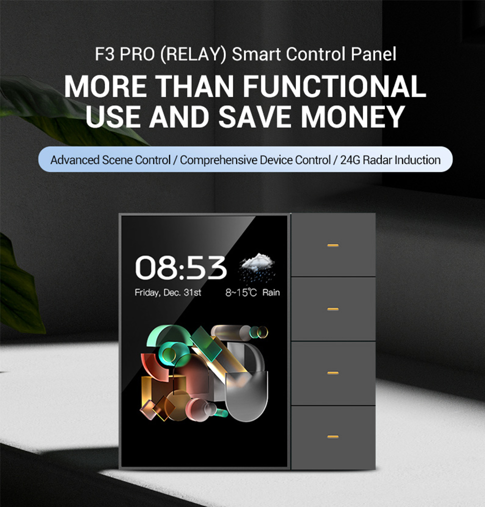Zemismart 3.5 inch Zigbee Smart Panel Switch 4 Gang Wall Light Switch with Radar Sensor Dimming Switch Curtain Scene Switch