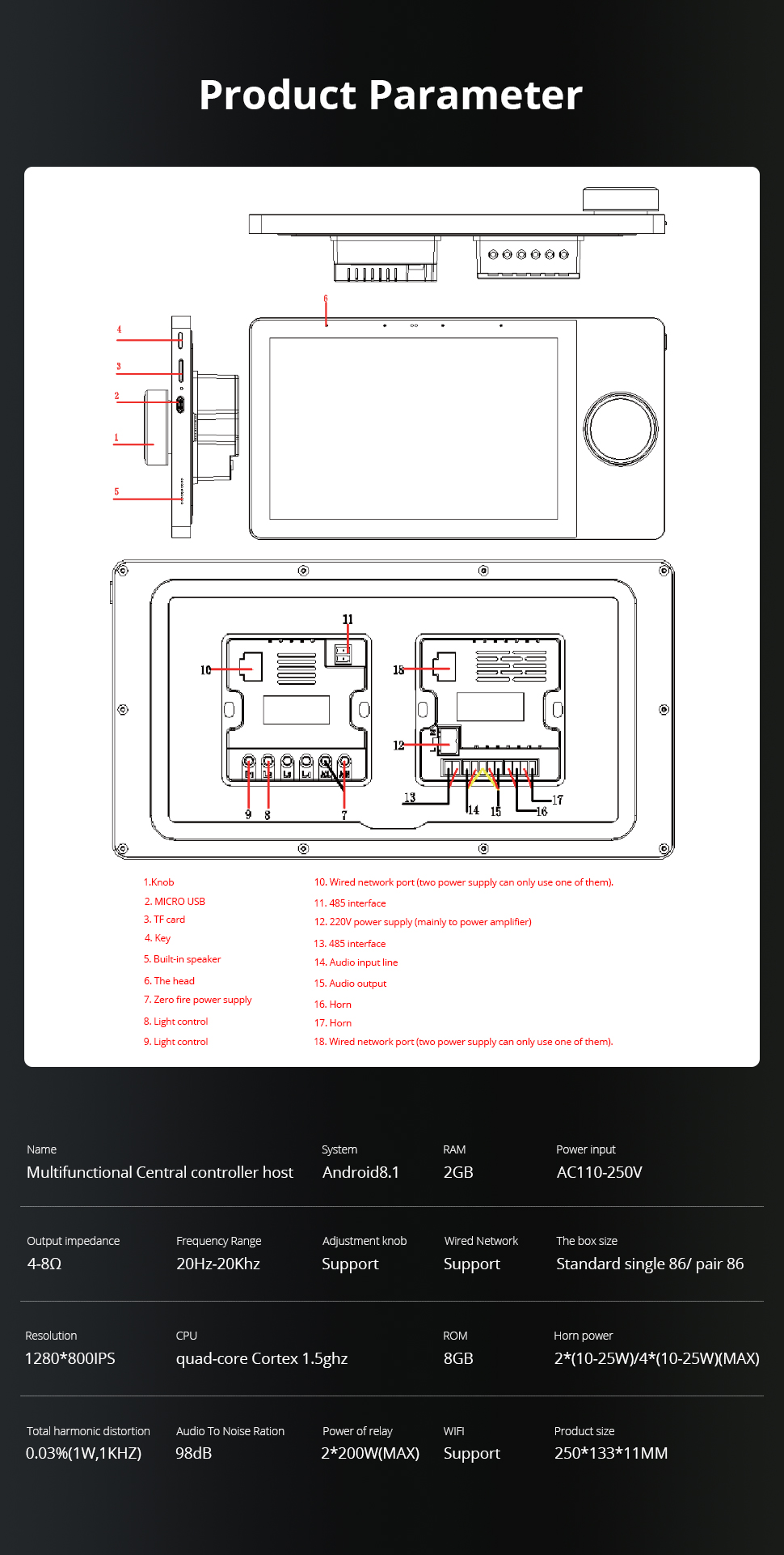 Zemismart 8 inches Smart Multifuncational Central Controller host Touch Panel for Scenes Control Zigbee Devices works with Tuya