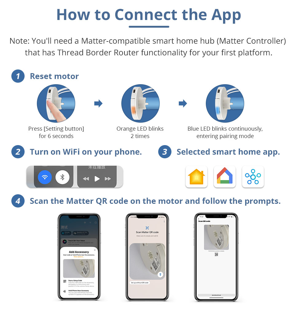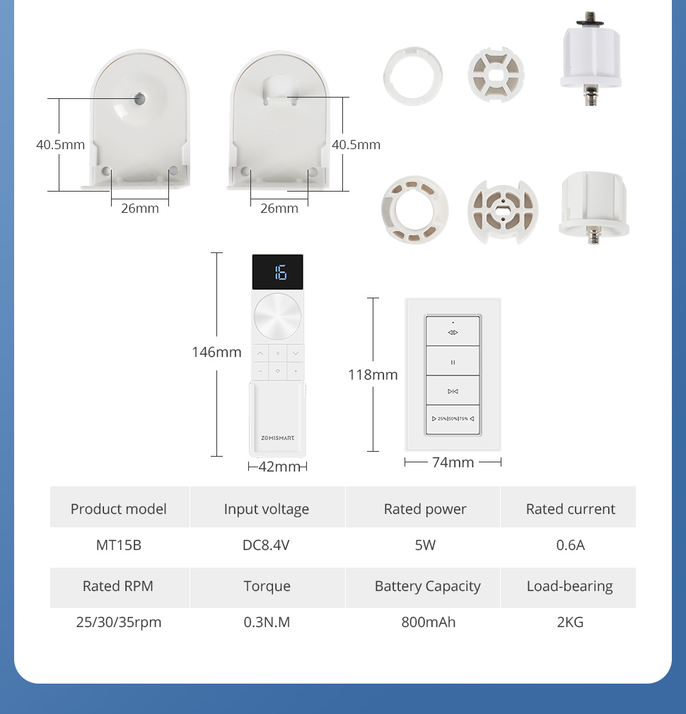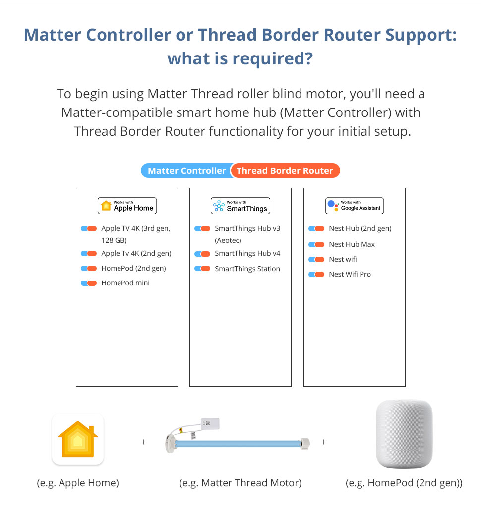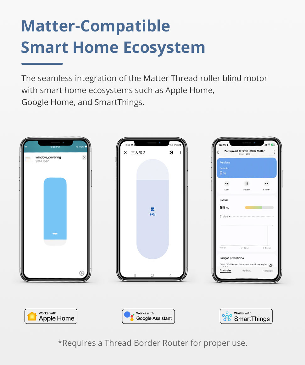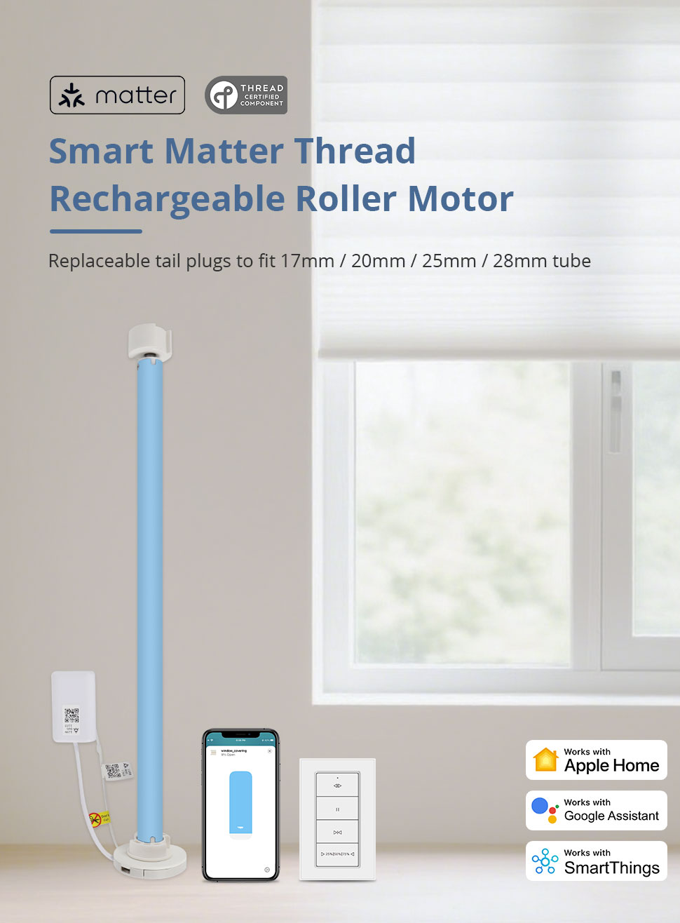 Zemismart Matter over Thread Built-in Battery Blind Motor compatible with 17/20/25/28mm Tubes HomeKit Google Home App Siri Control