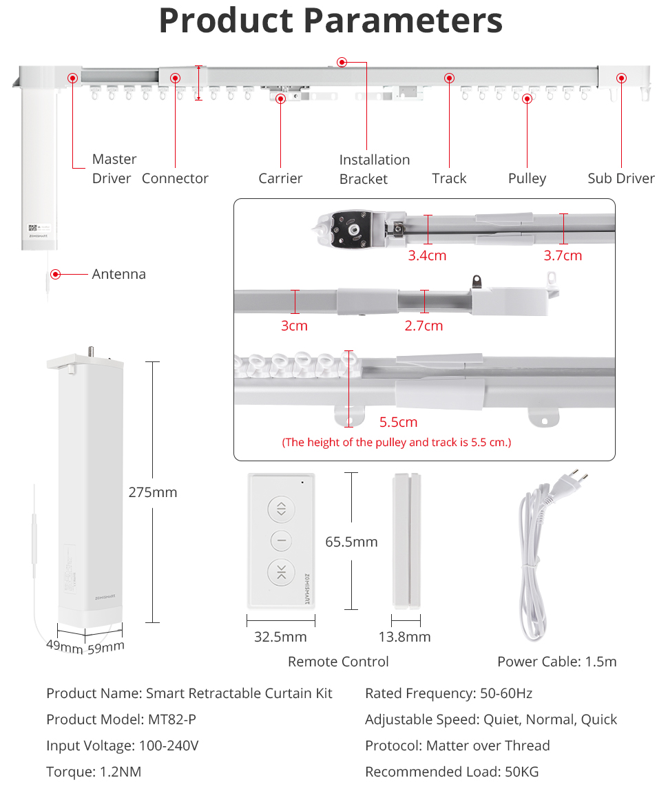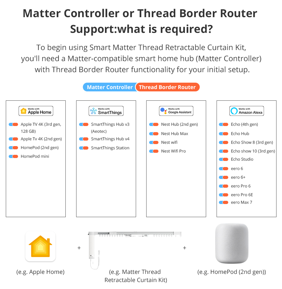 Zemismart Matter Thread Electric Retractable Curtain Track and Smart Motor Homekit SmartThings Home Assistant Alexa Google Home ships from USA EU