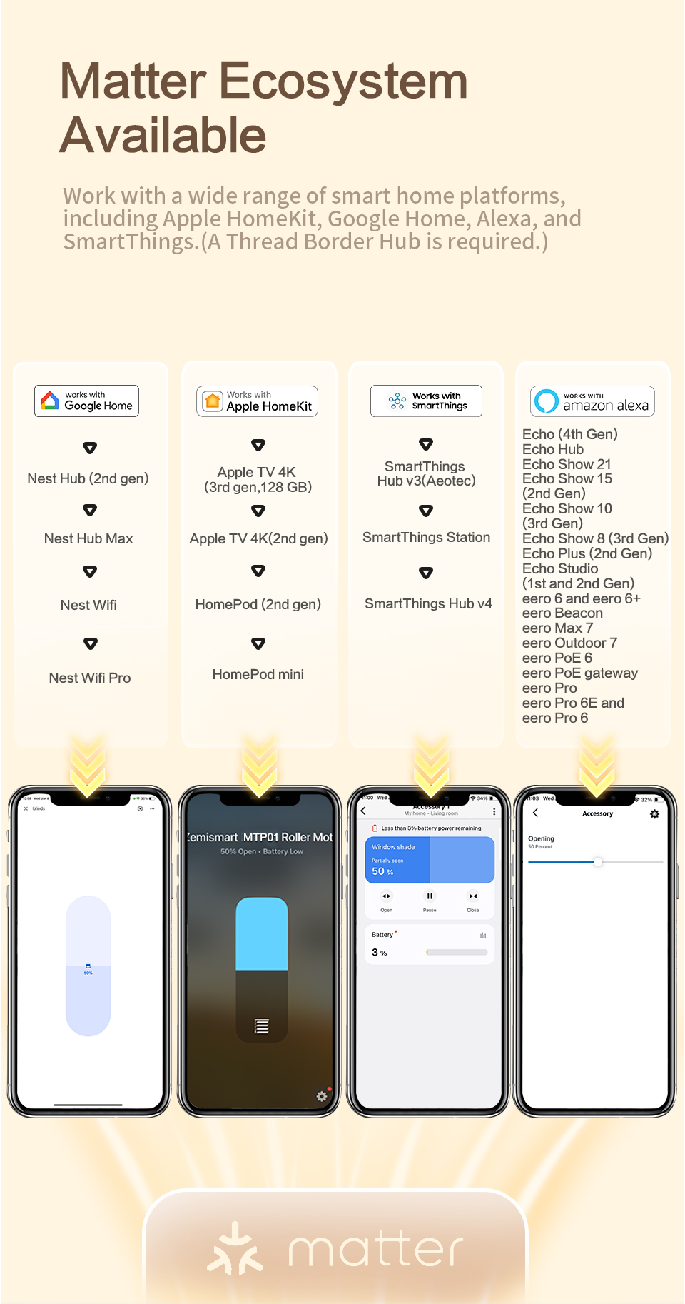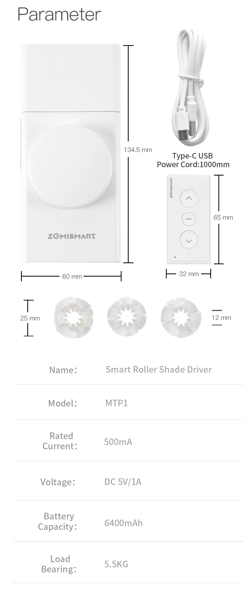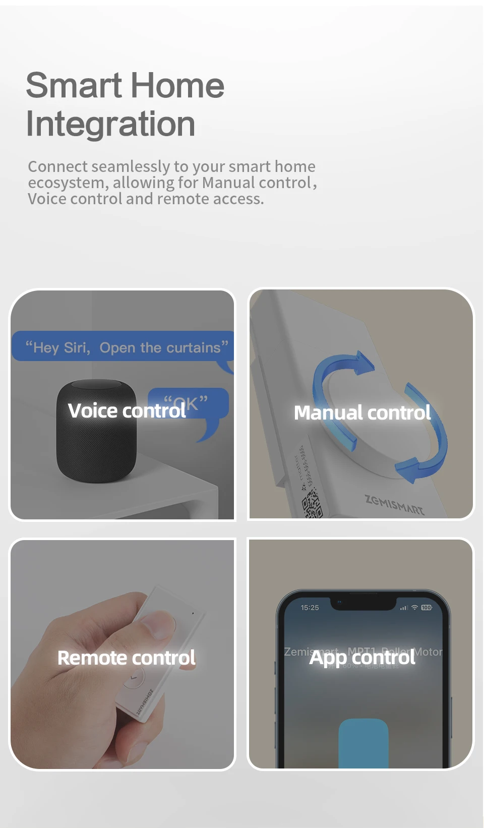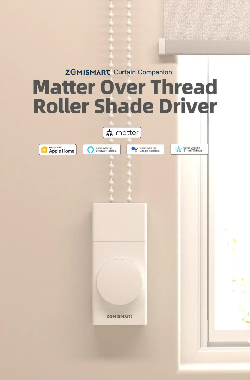 Zemismart Matter over Thread Built-in Battery Blind Driver Retrofit Roller Shade Motor HomeKit Google Home Assistant Smartthings App Siri Control ships from US,EU,CA,UK