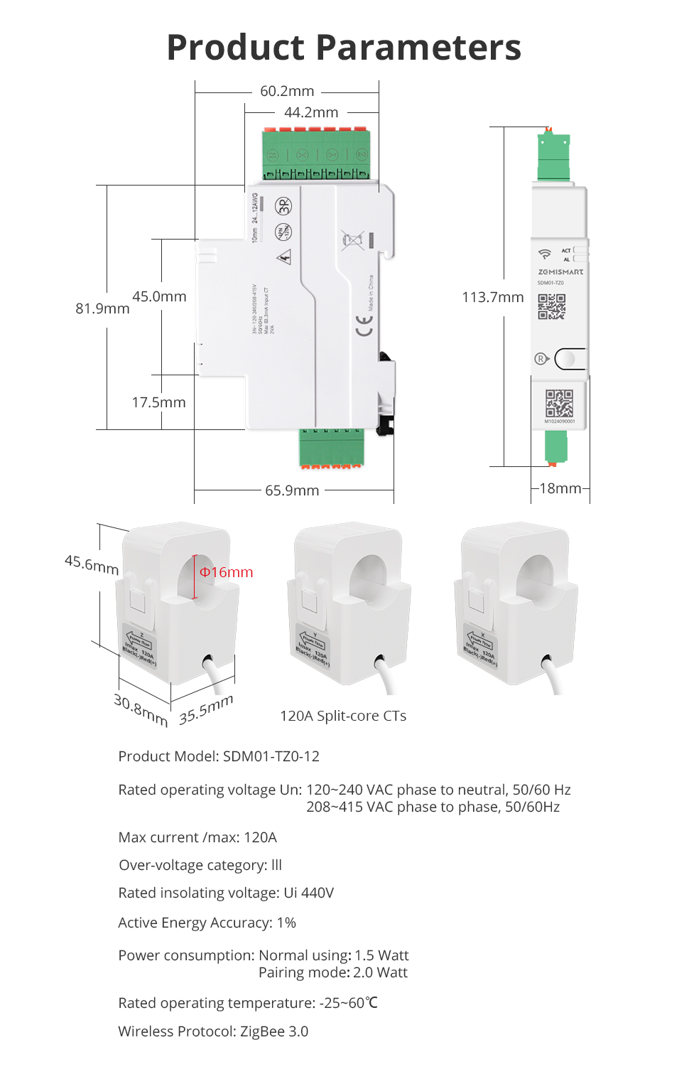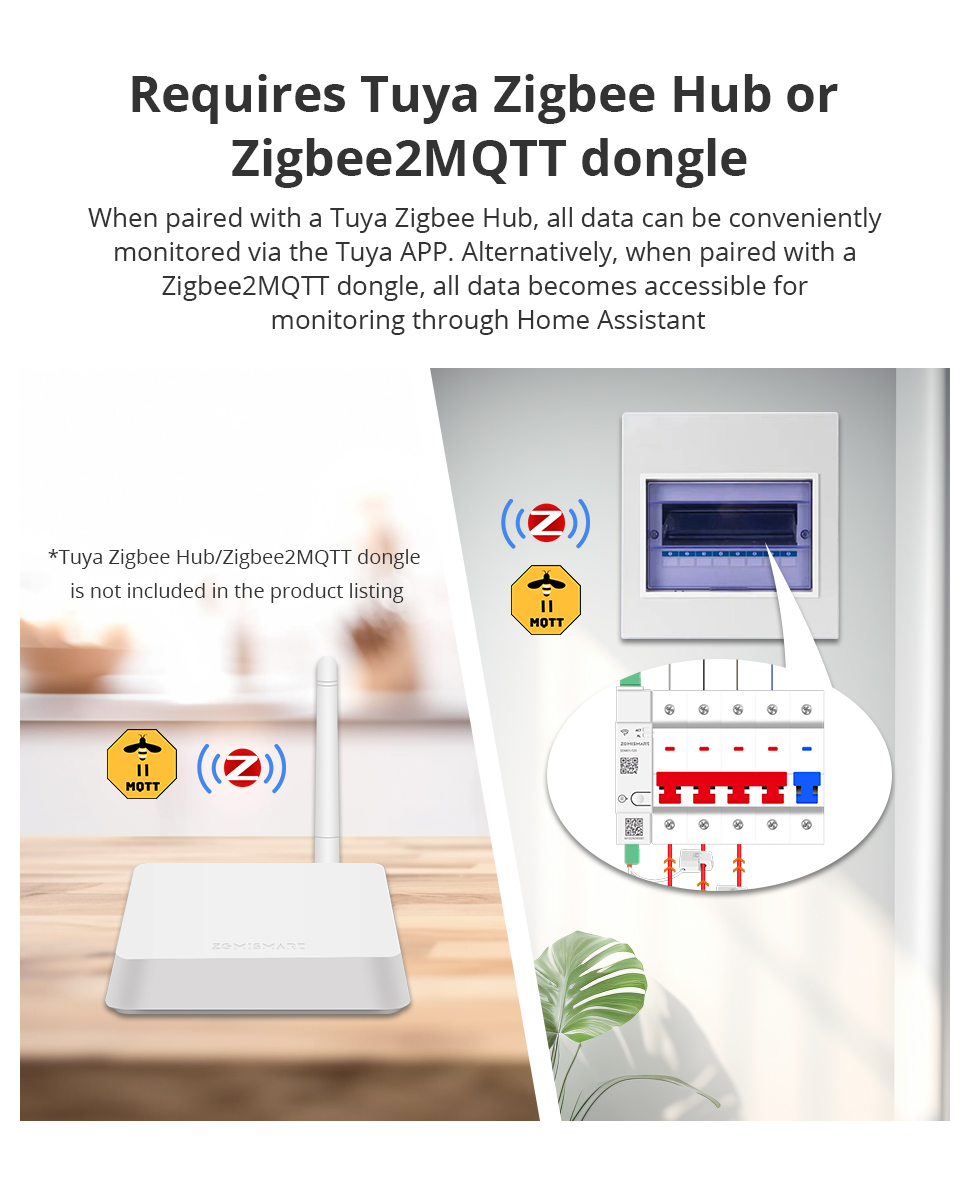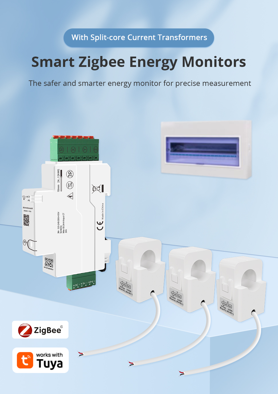 Zemismart Zigbee 3 Phase Smart Energy Meter Max 120A with 3 clamps works with Tuya measuring Alarm function Monitor 110v-240v
