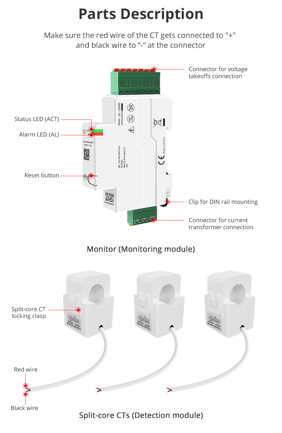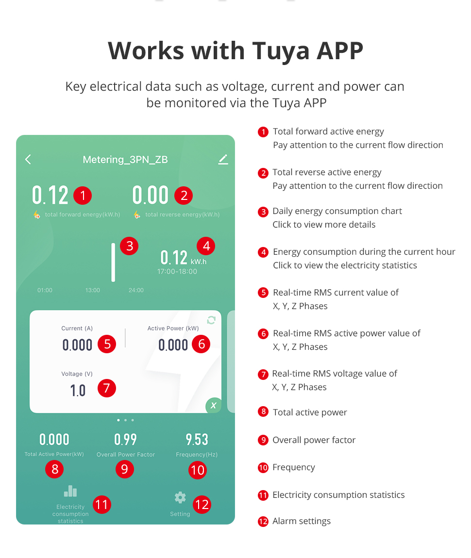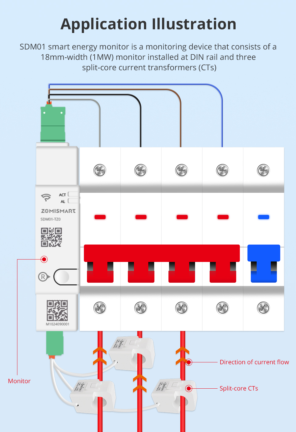 Zemismart Zigbee 3 Phase Smart Energy Meter Max 120A with 3 clamps works with Tuya measuring Alarm function Monitor 110v-240v