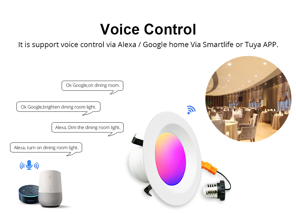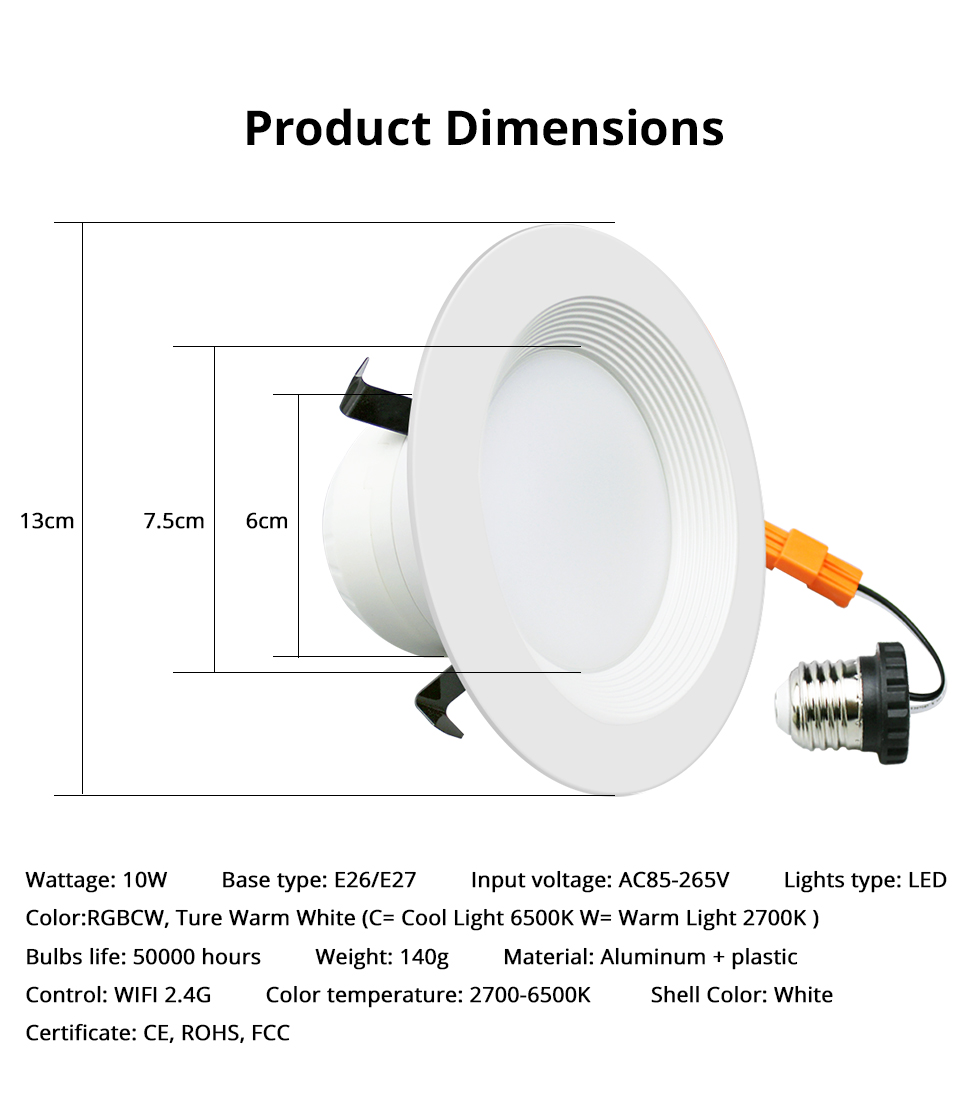 Zemismart Smart LED Ceiling Light Tuya Zigbee Downlight RGBCW 4 Inch US Type Alexa Echo Google Home Tuya Control