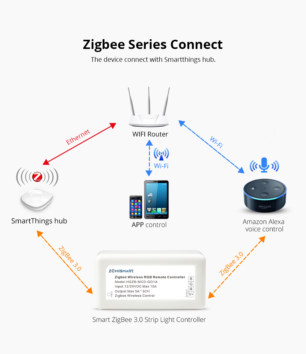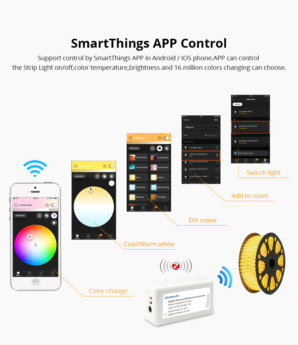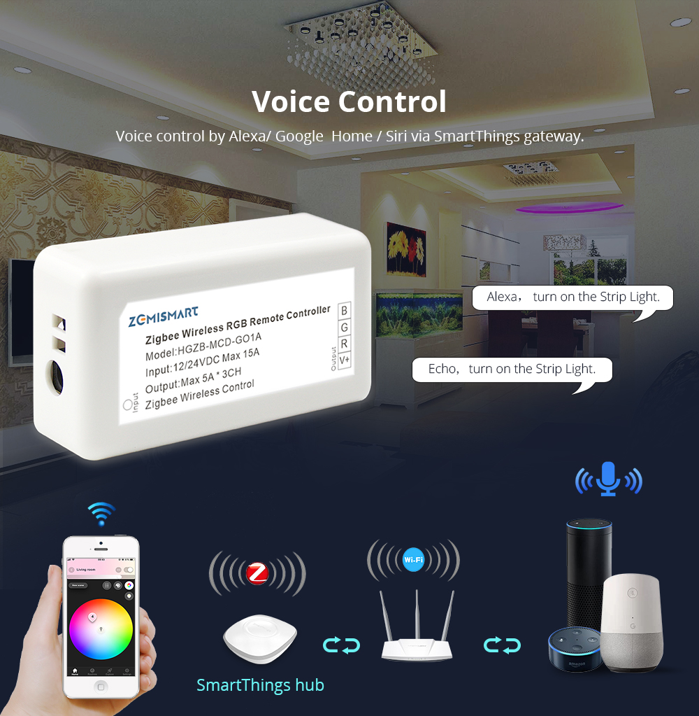 Zigbee ZLL RGB Led Light Strip Controller Driver SmartThings Control
