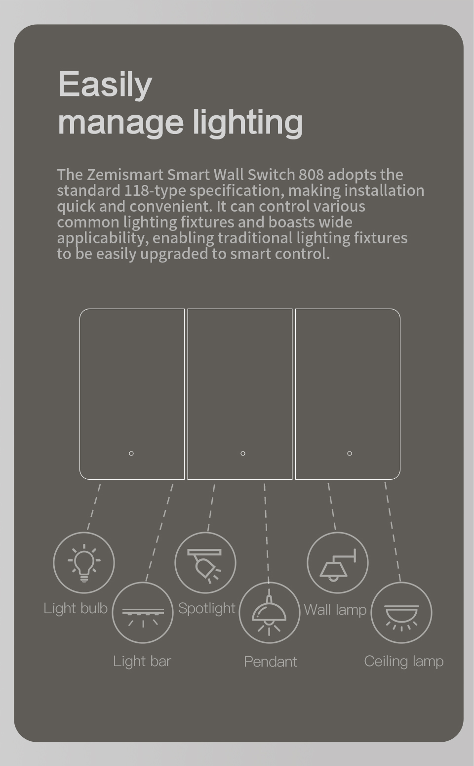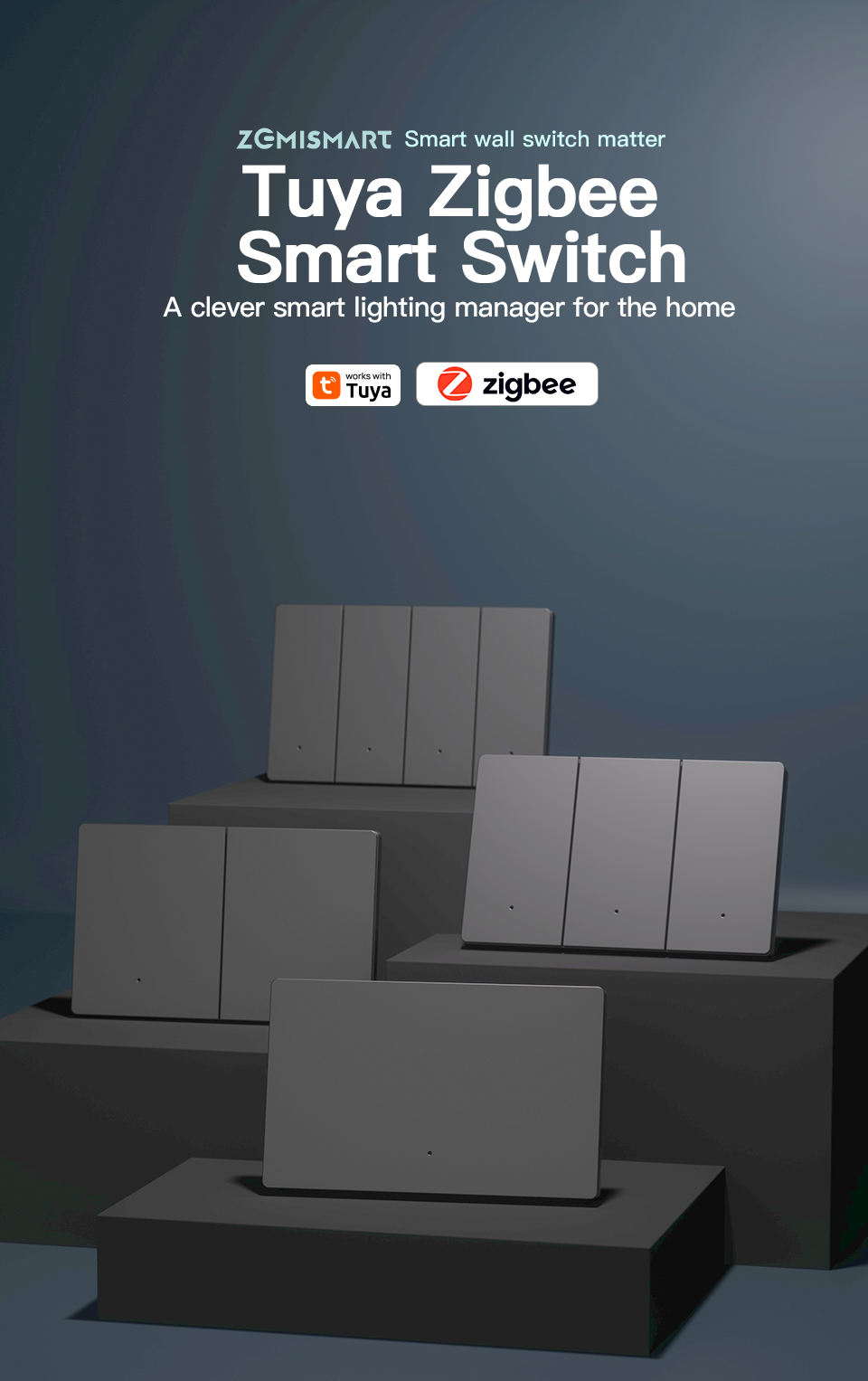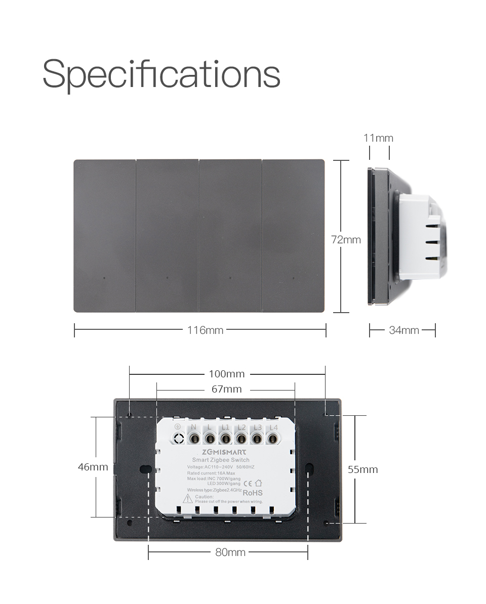 Zemismart Zigbee Neutral Switch Grey Color with Aluminum Alloy Material works with Tuya HomeKit Google Home via M6 hub