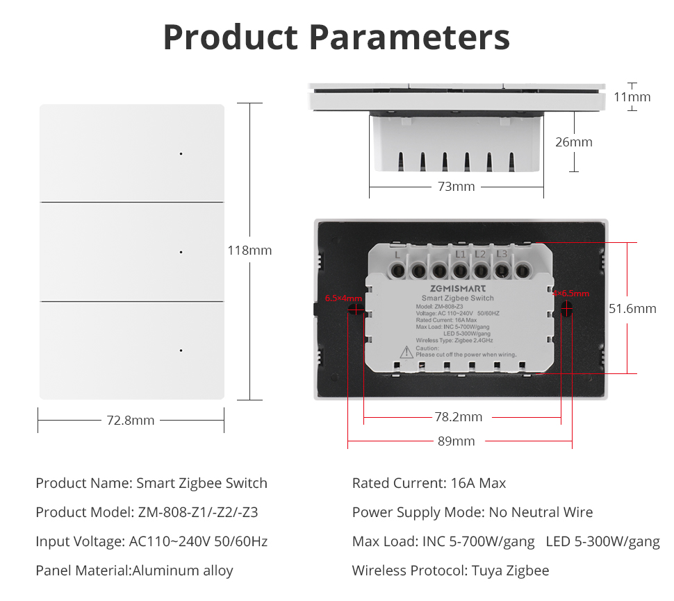 No Neutral Wire Required:This design allows for easy retrofitting into existing home wiring setups without the need for a neutral wire, making installation faster and more convenient while maintaining stable performance.