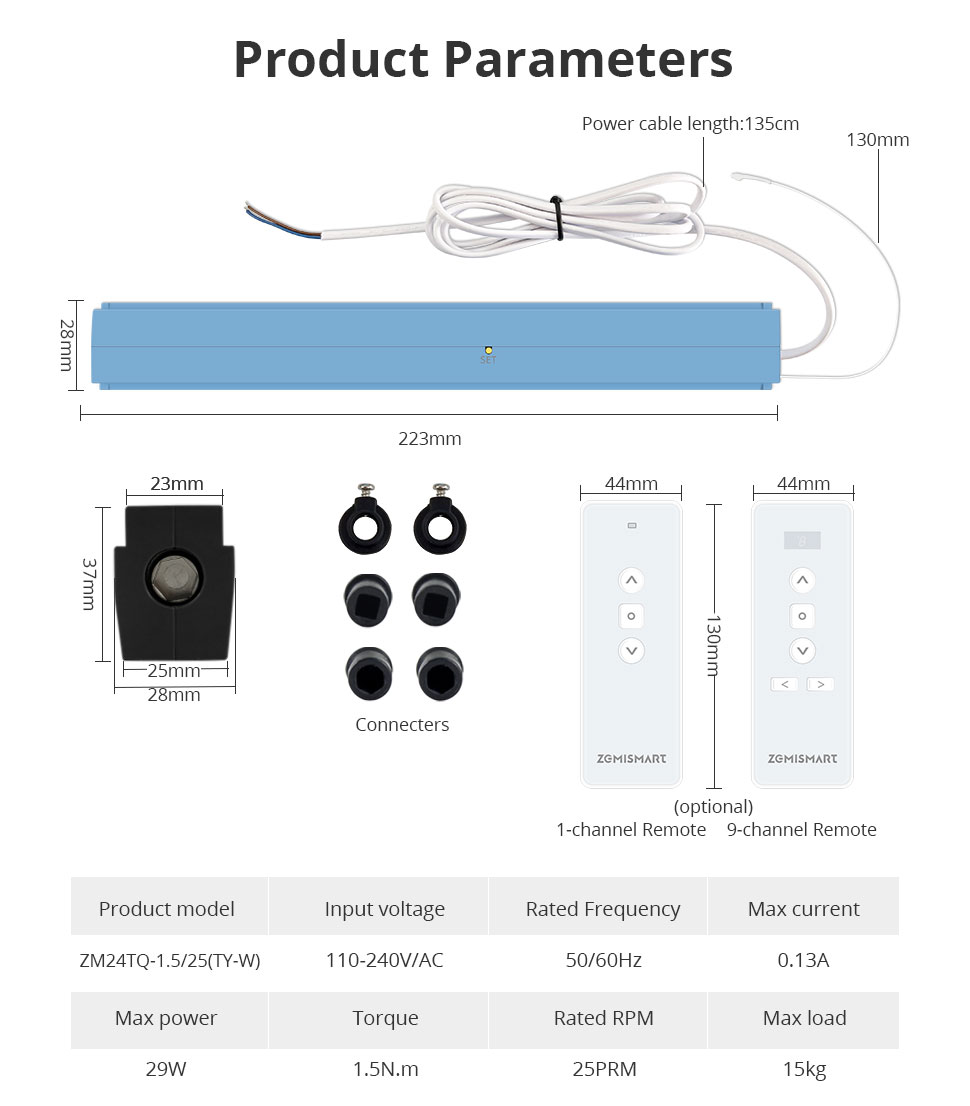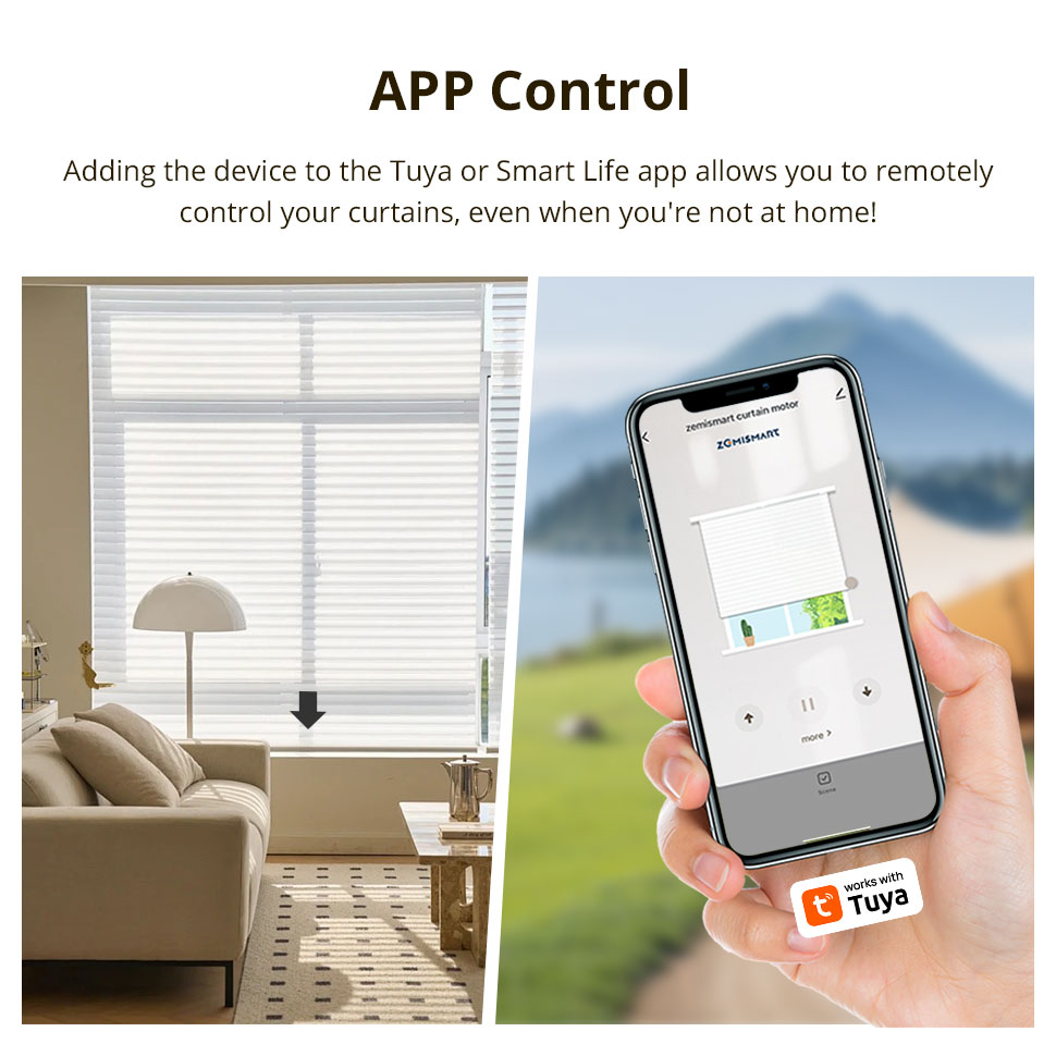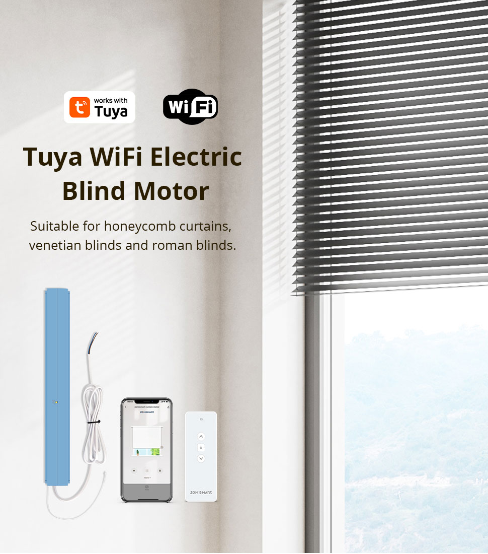 Zemismart Wifi Smart Blind Engine Motor for Aluminum Roman Blind Honeycomb Curtains Work with Tuya APP Alexa Google Home Voice Control