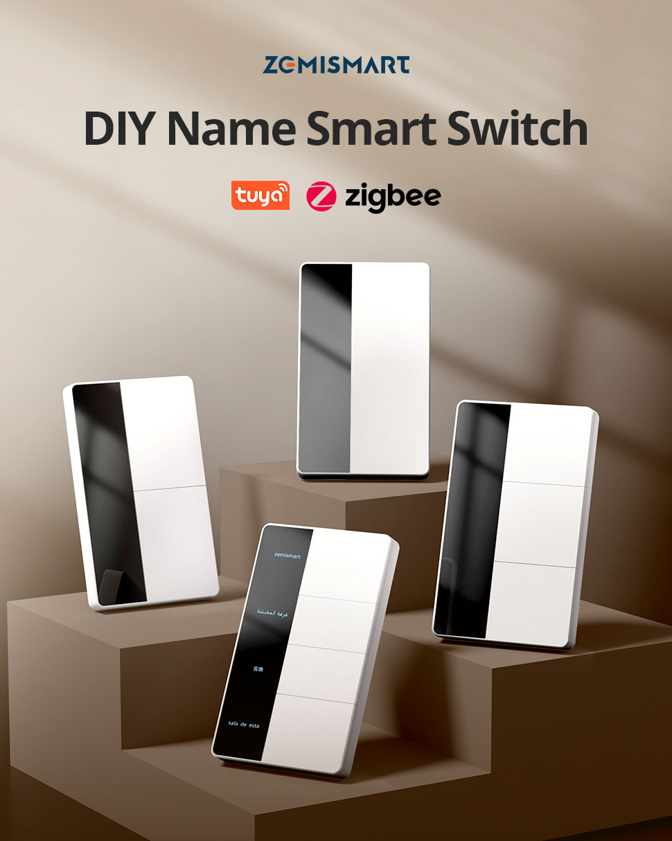 Zemismart DIY Name Smart Wall Switch Push Button 1 2 3 4 Gangs works with Tuya US Switch Smart Life Alexa Google Home SAA