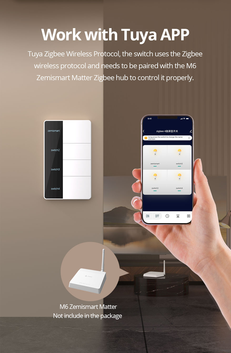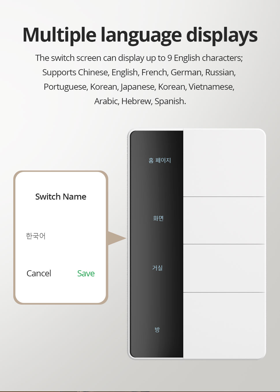 support modifying the name of the button on the Tuya APP, and it will be fed back to the switch screen in real time, saying goodbye to stickers, convenient and beautiful.