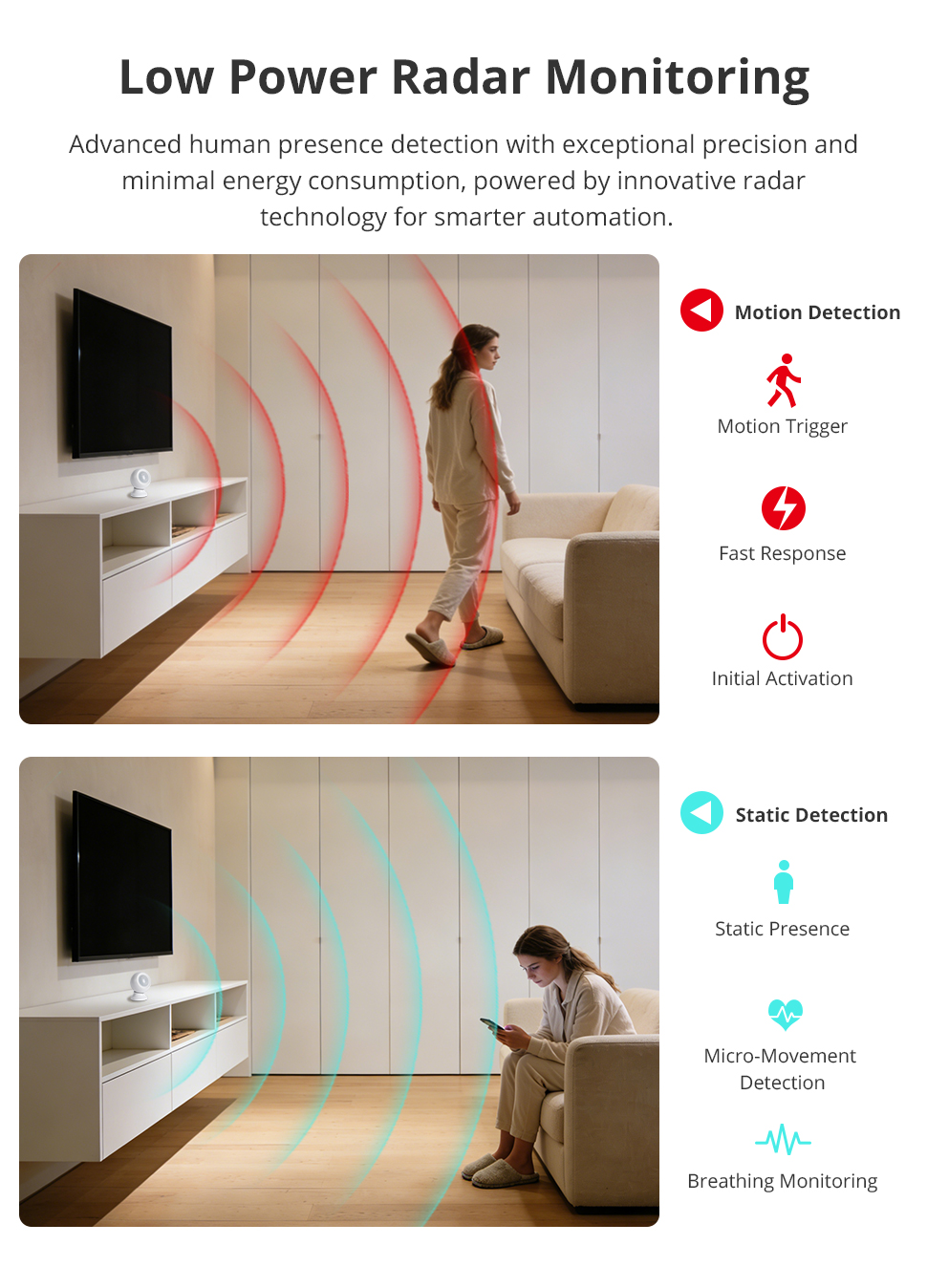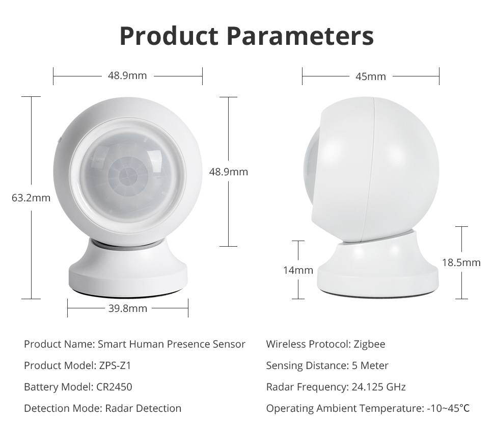Zemismart Zigbee Human Presence Sensor Battery Version Sensor Smart Body Detector Home Security System works with Tuya